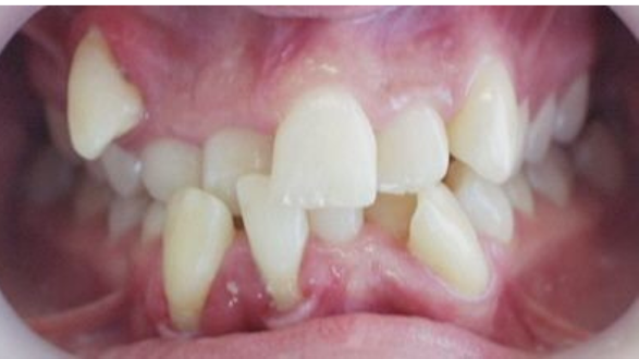 - تزاحم الأسنان الشديد: عندما يحدث نمو لمعظم الأسنان الأمامية في أحد الفكين بشكل متداخل بعضها فوق بعض .
